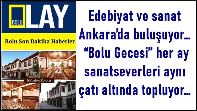 Sanatla dolu bir akşam geçirmek, şiirin gücünü hissetmek ve kültürel bir yolculuğa çıkmak isteyenler için Bolu Gecesi her ayın 14’ünde, saat 18.30’da Ankara Altındağ’da blunan Tarihi Hamamönü Kabakçı Konağı’nda yapılıyor. Bolu Gecesi, Ankara’nın kaçırılmaması gereken etkinlikleri arasında yer alıyor.Ankara’nın tarihi dokusu içinde her ay düzenlenen “Bolu Gecesi”, bu soruların cevabını sanatseverlere sunmaya devam ediyor. Kültür ve sanatın kalbinin attığı özel etkinlik, edebiyat tutkunlarını anlamlı bir buluşmada bir araya getiriyor.