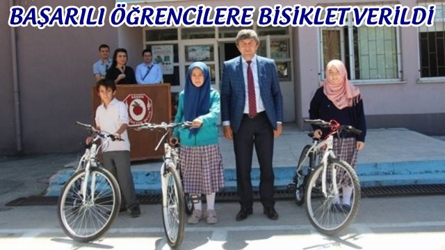 Sırasıyla bisikletleri verilen öğrencilerle hatıra fotoğrafı çektirildi.