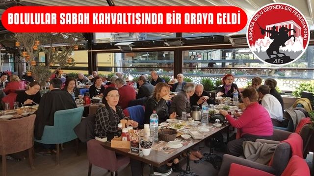 Ankara Bolu Dernekleri Federasyonu organizasyonunda Ankara da yaşayan Bolulular Sabah kahvaltısında buluştu. Geleneksel hale getirilen kahvaltı ve yemekli buluşmalardan biri daha gerçekleştirildi. Bolulular; "iyi günde kötü günde her zaman hep birlikte olmaya özen göstererek, birlikte olmaya devam edeceğiz"